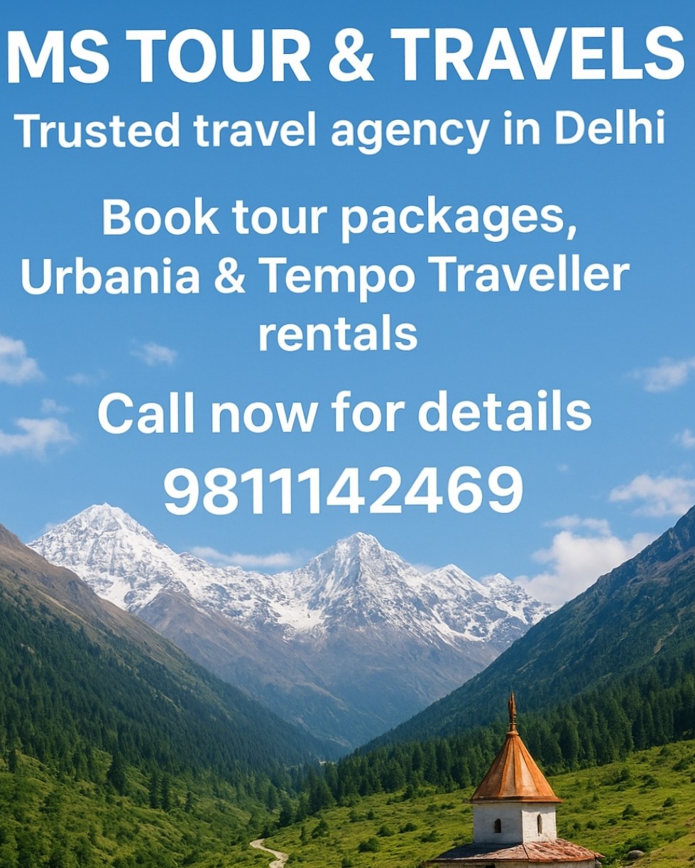 Plan your next journey with MS Tour & Travels, a government-registered travel agency based in Rohini, Delhi. We offer reliable and customized tour packages across India with a focus on comfort, safety, and transparent service.