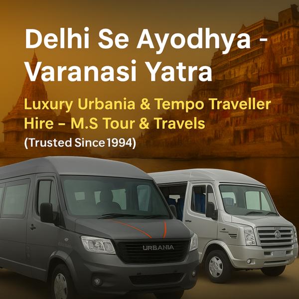 “Delhi to Ayodhya – Varanasi Trip | Luxury Urbania & Tempo Traveler Hire – M.S Tour & Travels (Trusted Since 1994)” 🚌 Delhi to Ayodhya – Varanasi Trip Booking Now from Delhi ✨ Luxury Urbania & Tempo Traveler Hire – M.S Tour & Travels (Trusted Since 1994) Are you planning a trip from Delhi to Ayodhya – Varanasi? M.S Tour & Travels brings you a comfortable, safe, and luxurious travel experience. 👉 Our Services: ✅ Luxury Urbania & Tempo Traveller ✅ Family & Group Tour Packages ✅ AC/Non-AC Tempo Traveller Available ✅ Trusted Since 1994 – 30+ Years of Experience 📞 Book Now: 98111 42469 Delhi to Ayodhya Varanasi Trip, Delhi to Varanasi Tour Package, Ayodhya Tour from Delhi, Varanasi Yatra by Tempo Traveller, Urbania Hire Delhi, Luxury Tempo Traveller Delhi #DelhiToAyodhya #DelhiToVaranasi #VaranasiTripFronDelhi #AyodhyaDarshanFromDelhi #TempoTravellerHireDelhi #UrbaniaHireFromDelhi #MSTourAndTravels #TrustedSince1994 #FamilyGroupTour #LuxuryYatra #DelhiNo1Travelagency #Top TravelAgencyDelhi