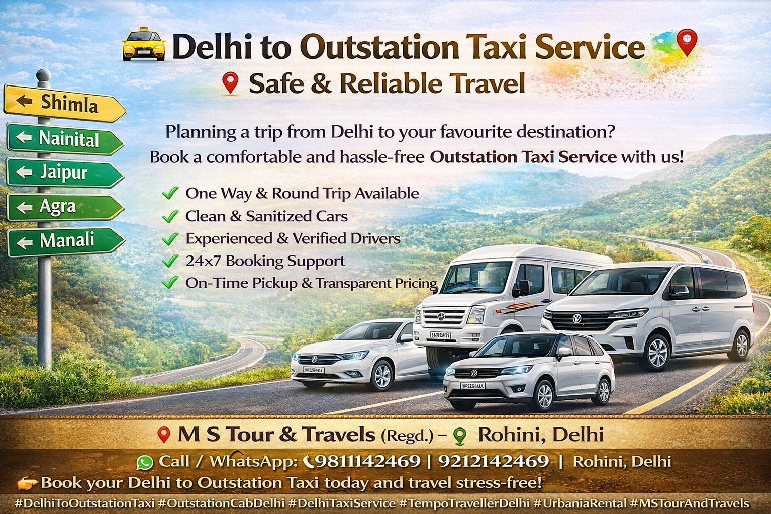 #DelhiToOutstationTaxi #OutstationCabDelhi #DelhiTaxiService #TempoTravellerDelhi #UrbaniaRental #MSTourAndTravels #CabHireDelhi