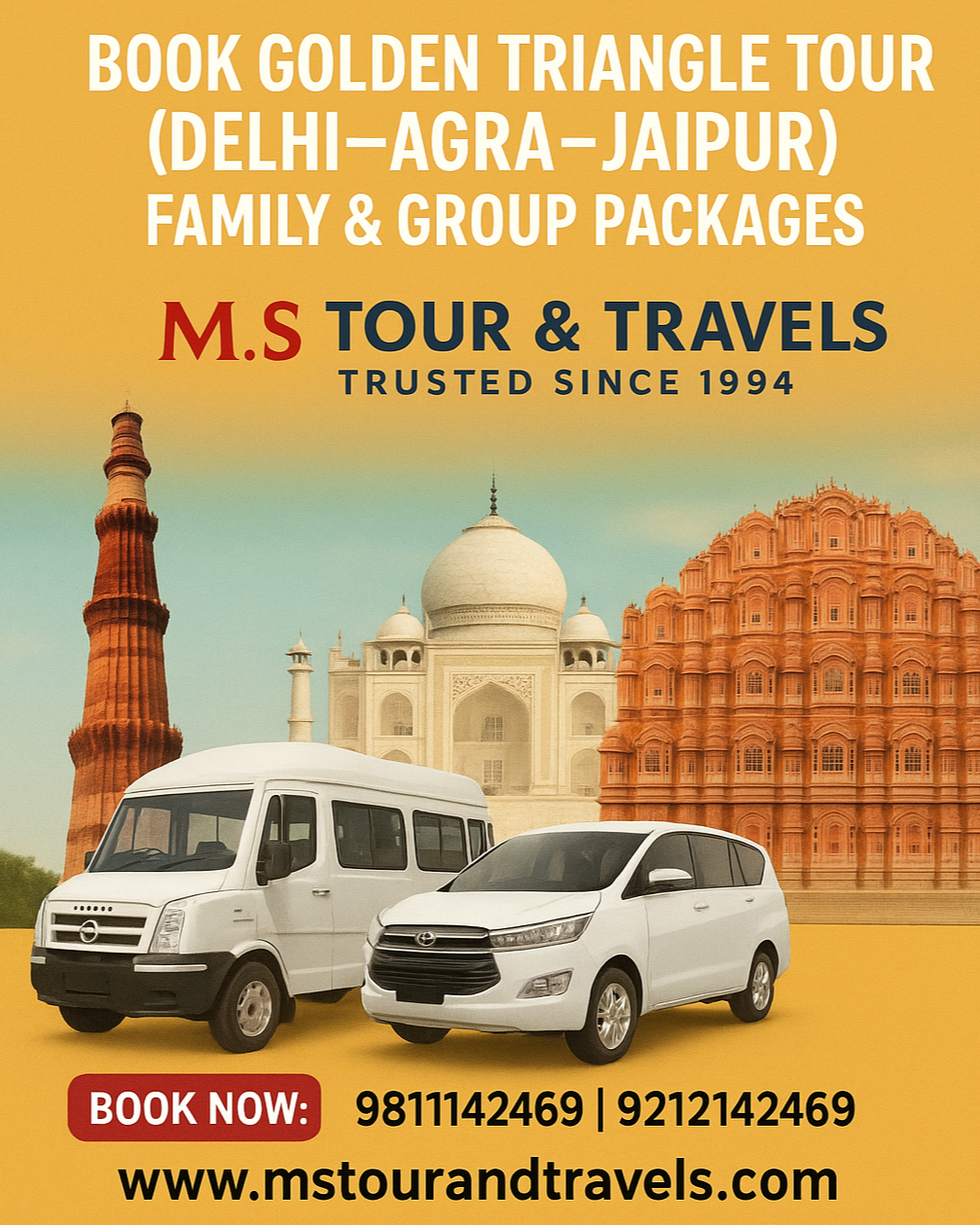 #GoldenTriangleTour #DelhiAgraJaipur #MSTourAndTravels #Trusted Since 1994 #TempoTravelerOnRent #UrbaniaOnRent #FamilyTourDelhi #GroupTourDelhi #ExploreIndia with MS #DelhiCarRental #OutstationTravel