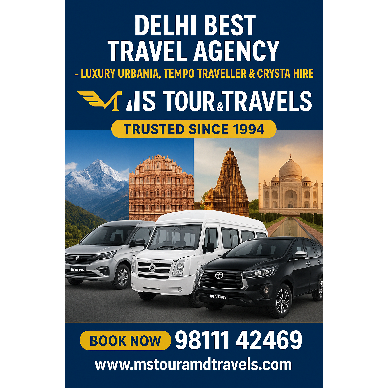 #MSTourAndTravels #BestTravelAgencyDelhi #UrbaniaOnRent #TempoTravellerDelhi #LuxuryCarHire #DelhiToCharDham #OutstationTrip #TravelWithComfort #DelhiCarRental #TrustedSince1994