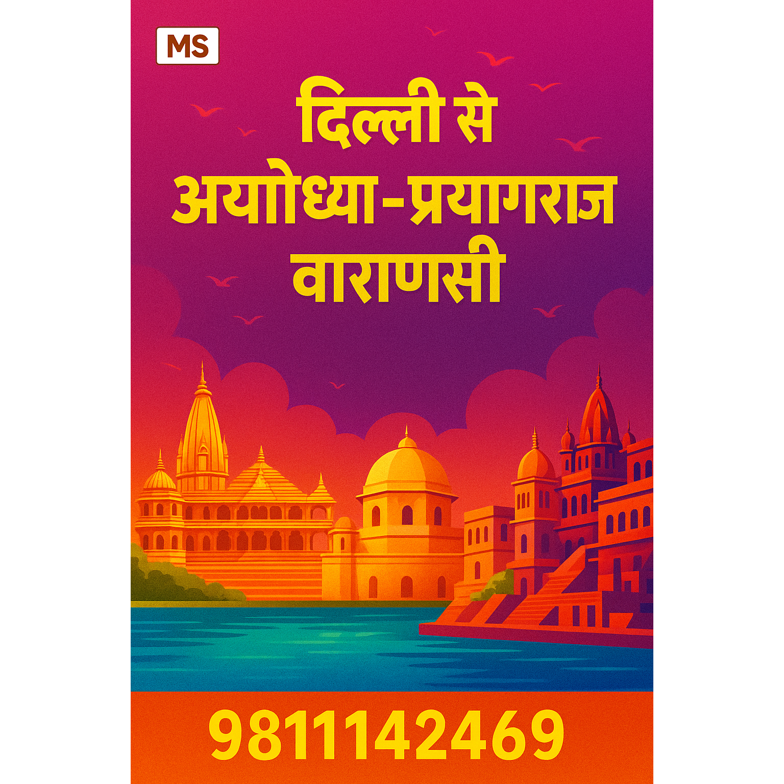 Delhi to Ayodhya Tour, Delhi to Varanasi Trip, Prayagraj Sangam Darshan, Mathura Vrindavan Cab Booking, Spiritual Tour from Delhi, Tempo Traveller Booking, Urbania Van on Rent, Religious Yatra Packages, MS Tour and Travels