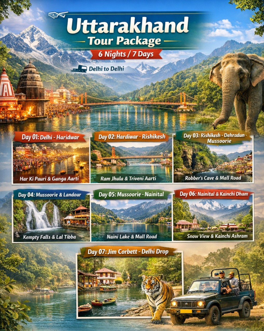 Haridwar โข Rishikesh โข Mussoorie โข Nainital โข Jim Corbett
